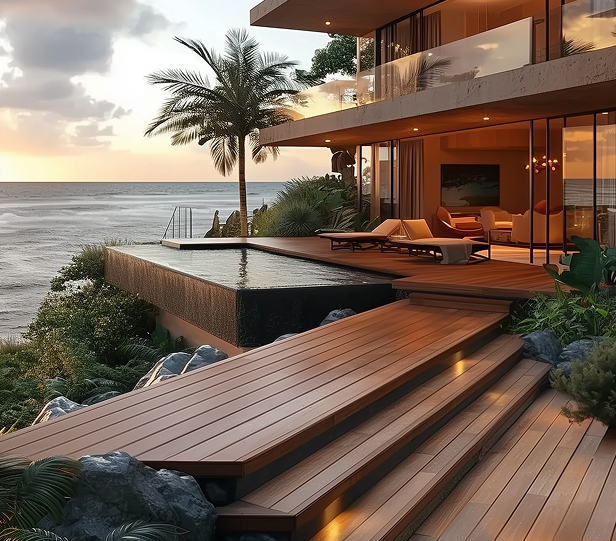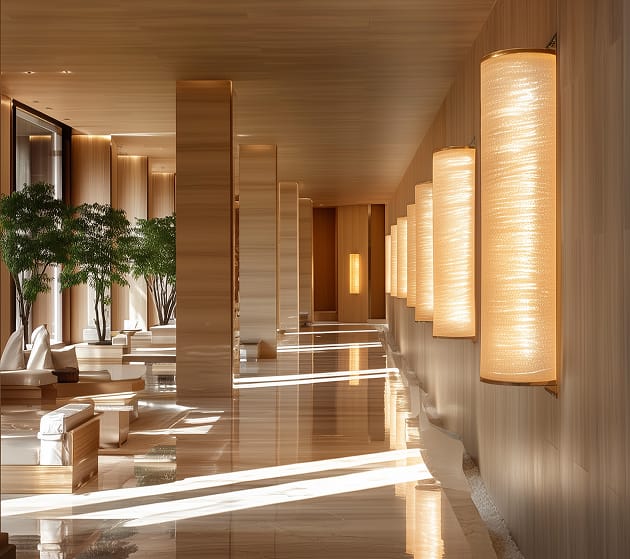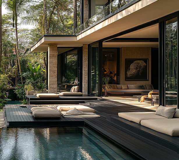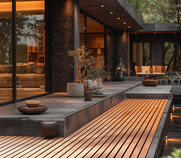 Bamboo facades shape space with depth, warmth, and an organic flow. A balance of strength and lightness, they catch the shifting light, creating textures that evolve throughout the day. They bring a quiet sophistication to the surface—where nature and design meet in seamless harmony.
